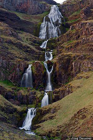 A multi stage waterfall near Olafsvik in the north of the Snæfellsnes peninsula. The Snæfellsnes Peninsula is in Vesturland in the west of Iceland. This photo was taken in the very early morning in June of 2012 before the rise of the midnight sun. This photo is part of the exhibition Waterfalls of Northern Europe (Oct'14). This photo was taken with a digital camera.